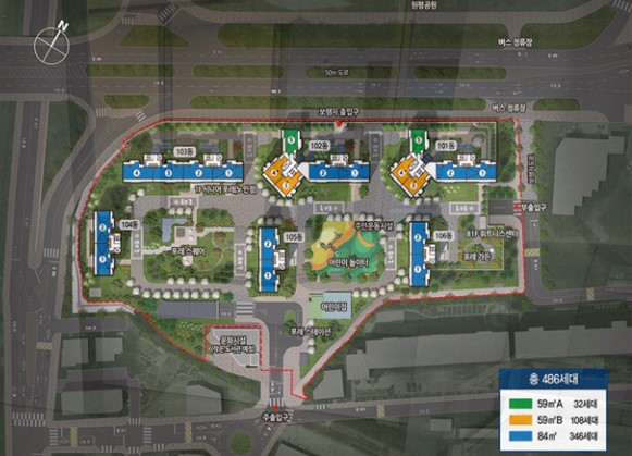6개동, 486세대의 규모로 건설 예정입니다.
