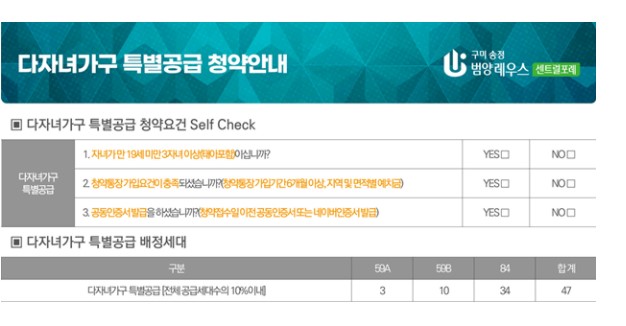 구미 송정 범영레우스 센트럴포레 다자녀가구 청약
