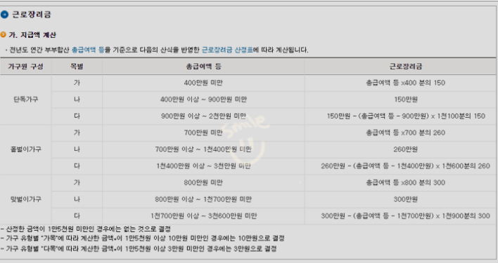 근로장려금 지급액 계산방법