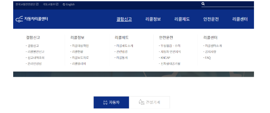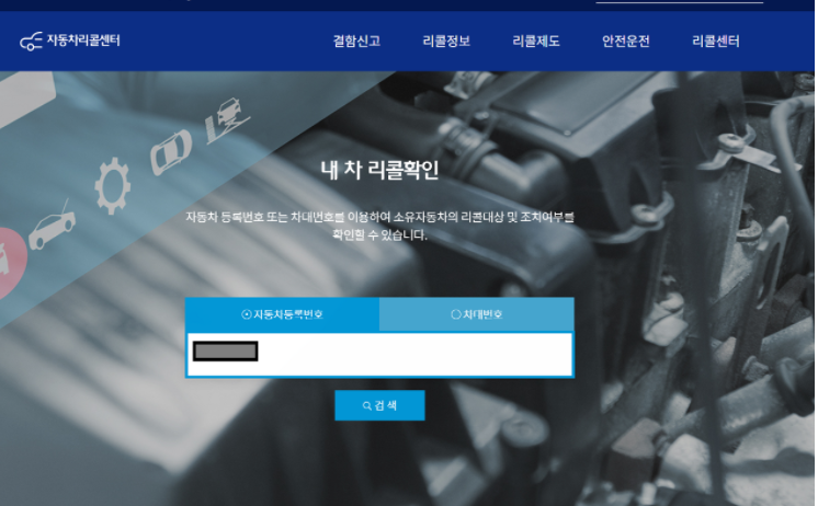 (리콜 항목으로 들어가서 차량 번호를 조회하면 리콜 현황 확인이 가능합니다)