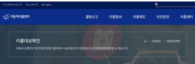 국토부 리콜 대상자 확인 홈페이지 : www,car,go,kr