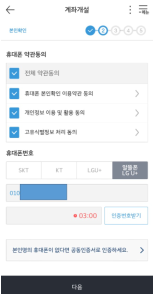 이름, 주민등록번호, 휴대폰 번호를 누르고 다음을 클릭합니다.