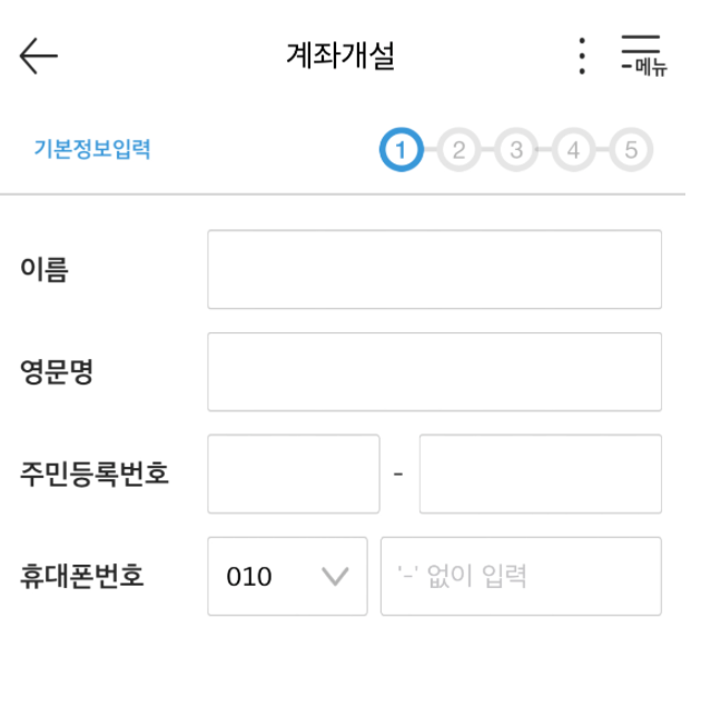 계좌 개설 클릭 후,