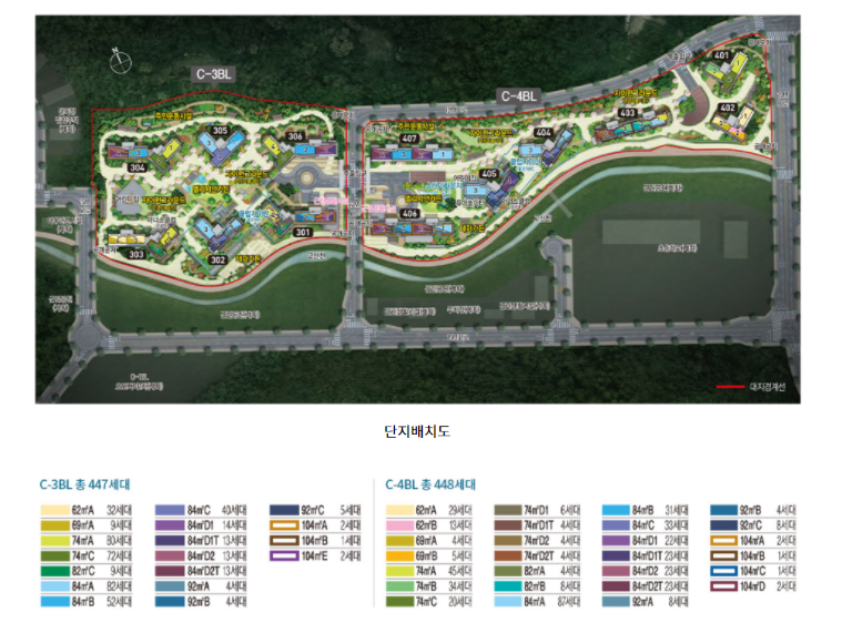 3블록과 4블럭을 나누어서 분양을 진행하고 있습니다.