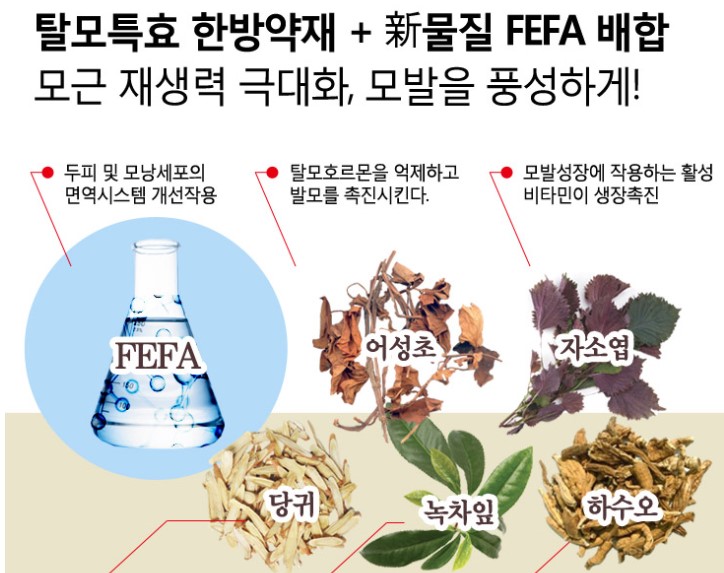 한방약재를 배합하여 모발 재생력을 극대화한 제품이라고 합니다.