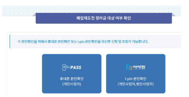 홈페이지에서 폐업지원금 대상 여부를 확인한 후