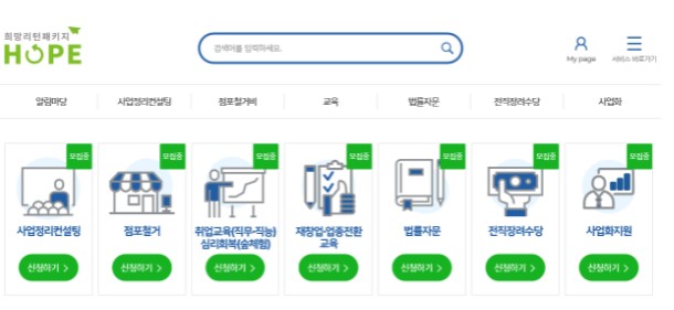 취업 및 재창업 교육 등 소상공인 재기 프로그램인 희망리턴패키지를