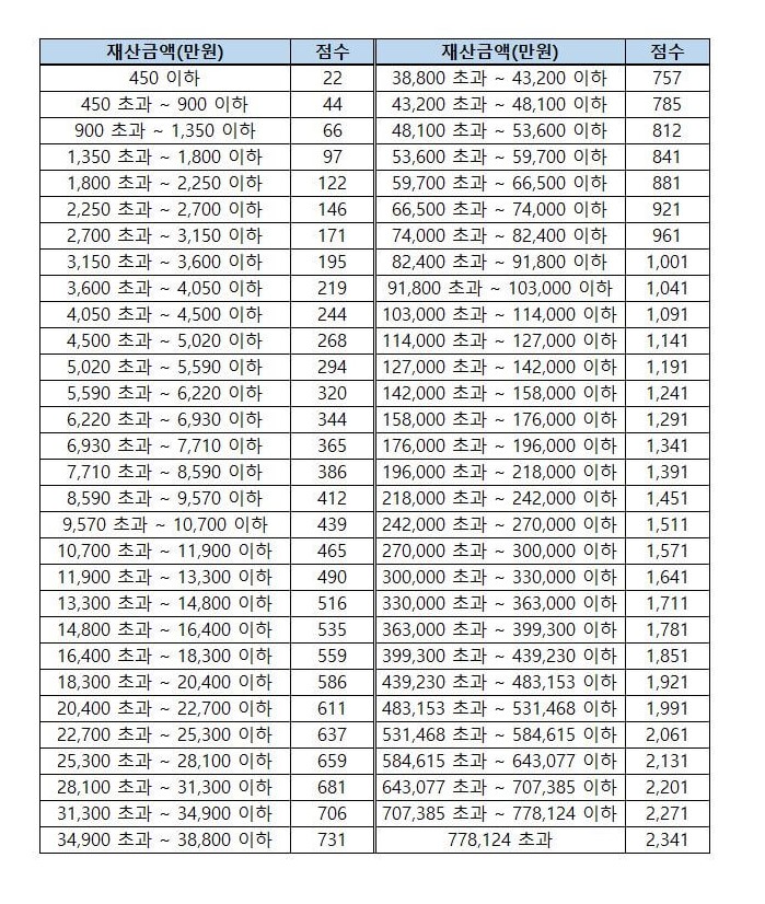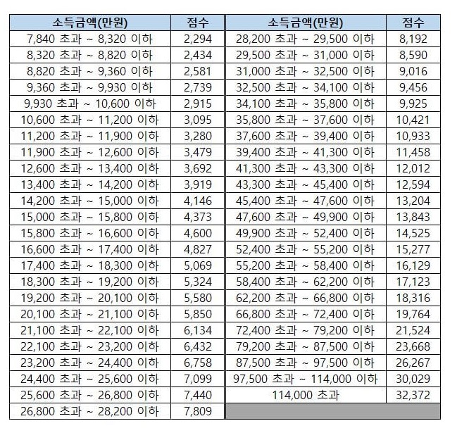 건강보험료 산정기준표