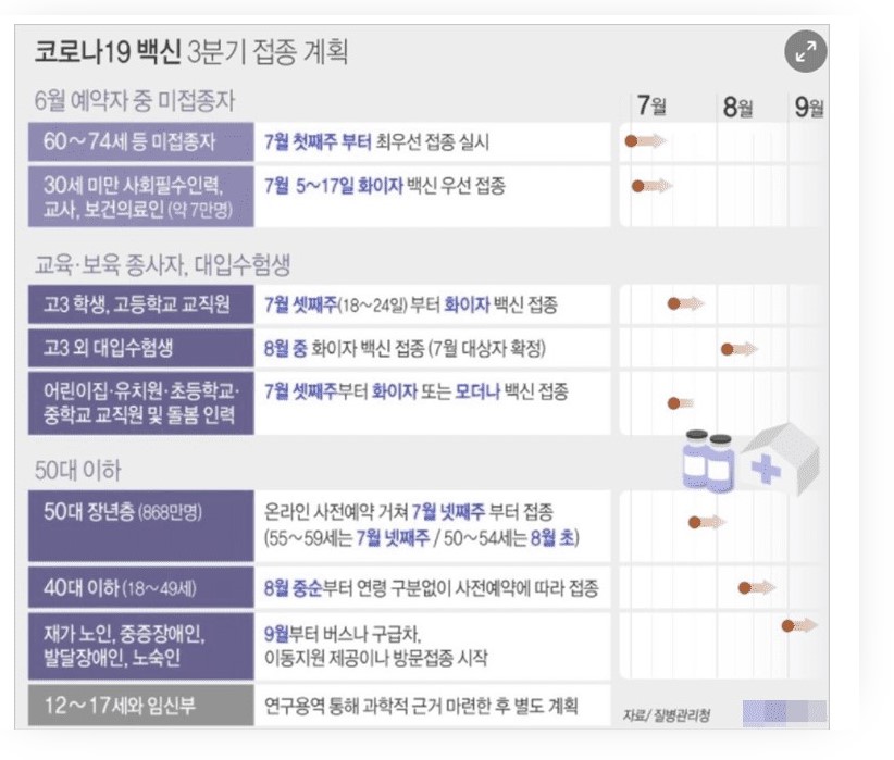 8월에는 40대 이하~18세까지의 백신 접종